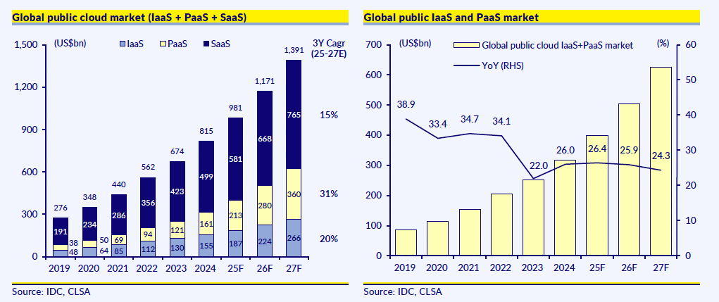 But this may be an inflection point. IDC projects global public cloud demand will grow at 26% a year to USD 626 billion by 2027, with penetration reaching 50%. China continues to court the global south to join its ecosystem, as seen in the recent announcement at WAIC. Then it can finally find a way to leverage its cloud technology for international growth, as well as export cloud services along with its growing AI influence.