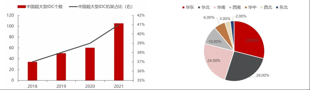 In terms of scale, the number of super-large data centers in China has grown rapidly from 34 in 2018 to 105 in Q3 2021, with a corresponding rack proportion of over 40%;