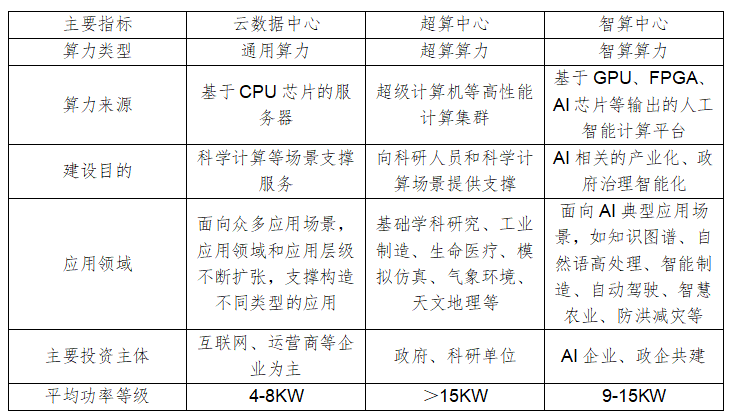 Based on computing power, data centers can be divided into three types: cloud data centers, intelligent computing centers, and supercomputing centers.