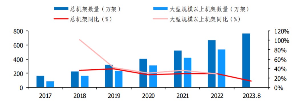 2) The scale of racks continues to grow steadily, and the scale of large data centers grows rapidly