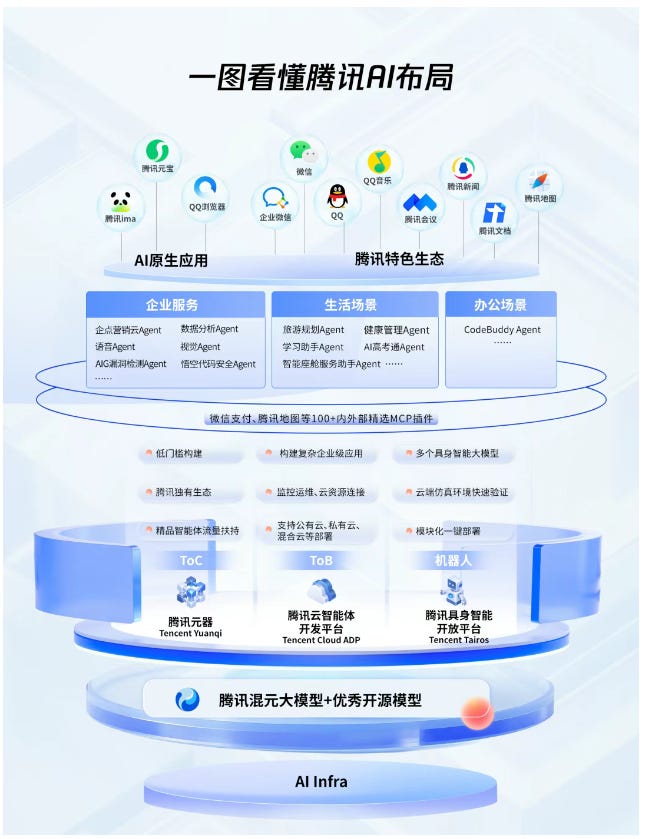 Similar to what Huawei has been doing with its “AI in a box” strategy. Tencent introduced five major AI productivity platforms to bridge the "last mile" of AI industrial applications.